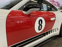 Datorskuren sidostreamer av 8-års vinyl. Levereras komplett till båda sidor. Försedd med appliceringstejp för enklare montage.