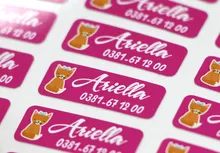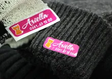 120st Namnlappar, 30x13mm, med lim och tryck för att kunna klara maskintvätt 60 grader. Namnlapparna levereras på ark.