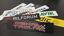 Skylt för att ersätta registreringsskylt 520x110mm med eget tryck. Används för att täcka originalskylt vid utställning. Tillverkad som dekal, 1mm plastskylt, 3mm skummad PVC eller 1.8mm aluminium.