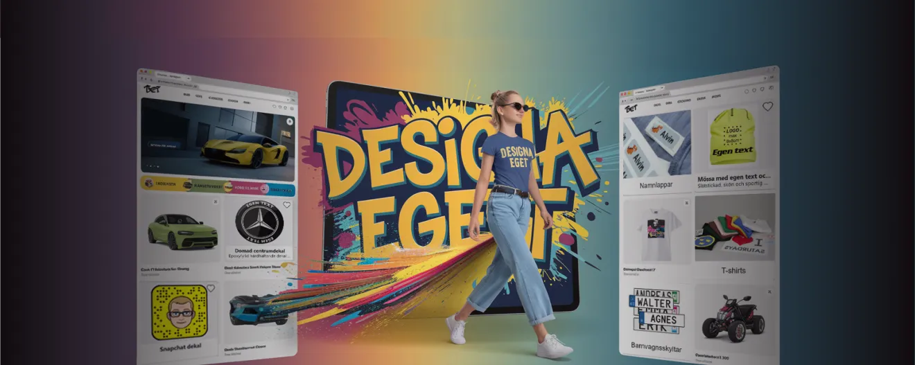 Här kan du enkelt beställa texter i alla tänkbara former. Snygga texter i skuren vinyl kan du enkelt montera på alla släta ytor, på bilen, på båten eller på glasrutor. Välj på över 60 färger i regnbågens alla färger, i stort sett obegränsad storlek och i vilket typsnitt du önskar!